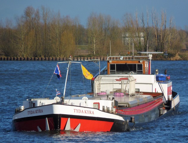 Tyda Kyra , 60,00 x 7,25 x 2,62 , 725 ton , Bouwjaar 1964 , Werf T.van.Duijvendijk in Lekkerkerk ( Nederland ) , ex Hoop op Zegen , ex Thuredregt , ex Carmen , ex Branding , eigenaar Vof Tyda Kyra in Barneveld , ENI 02311791