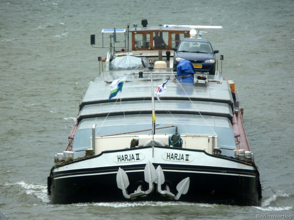 Harja II , 54,96 x 6,60 x 2,65 , 690 ton , Bouwjaar 1930 , Werf de Korte in Moerdijk ( Nederland ) , 255 pk MAN en 80 pk DAF boegschroef , ex St.Antoine , ex Banjak , ex Risico , eigenaar Vof Hoeve in Groningen , ENI 02304639