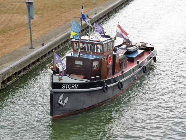 Storm , 19,43 x 4,80 x 2,00 , Bouwjaar 1909 , Werf van der Schuyt in Papendrecht ( Nederland ) , 235 pk Stork , ex Unser Fritz , ex IJsselmeer , ex Beran , ex Benny , ex Jetty , ex Immanuel , ex Zephyrus , ex Orion , ex Trijnko II , ex Martin , ex Ronald , ex Brizo , ex Ferna , eigenaar ? in ? , ENI 02014618