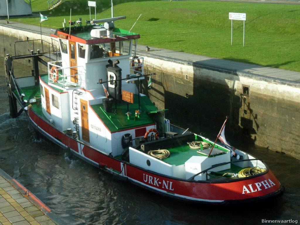 Alpha , 19,44 x 5,10 x 1,90 , 22 ton , Bouwjaar 1942 , Werf De Hoop Boot in Leiden ( Nederland ) , 768 pk Deutz , ex Lies , ex Titan , ex Ira , ex Decomea , eigenaar J.van.der.Berg in Urk , ENI 02102268