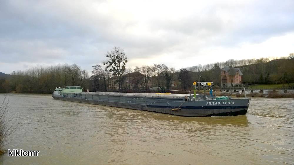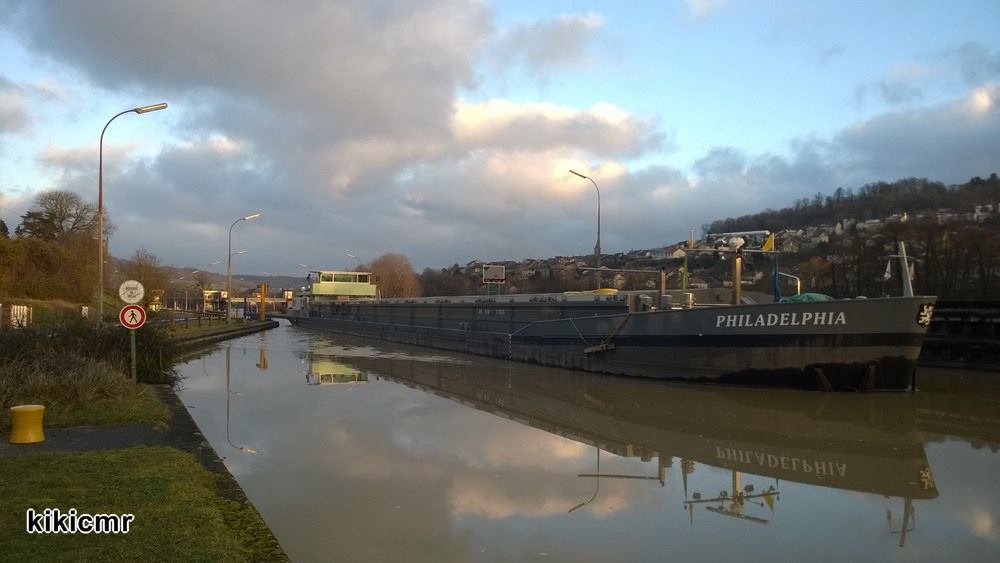 Un habitué de la Moselle, à l'écluse de Pompey le 31 janvier 2015 (montant, chargé d'ammonitrate en big bag pour vider au port de Toul-Valcourt) :
