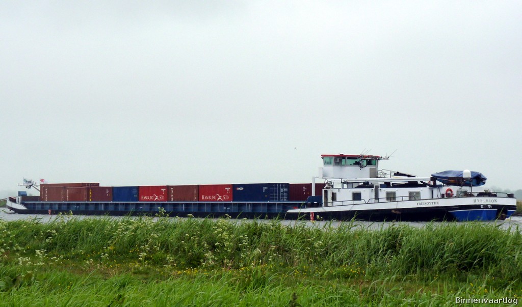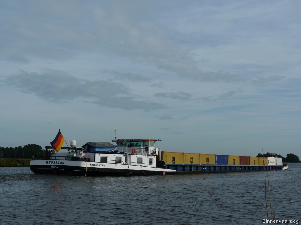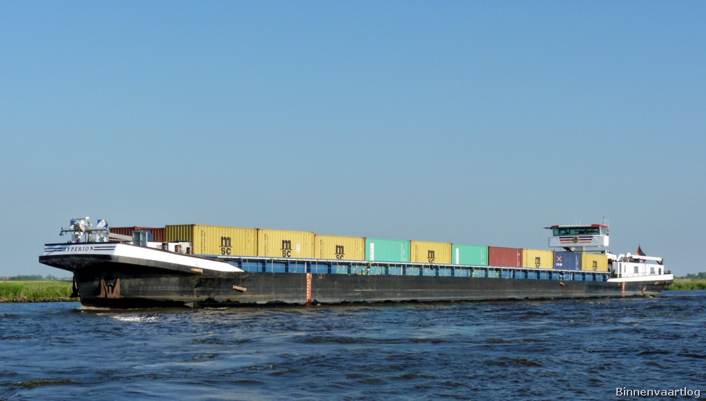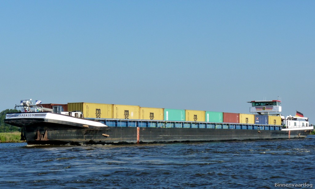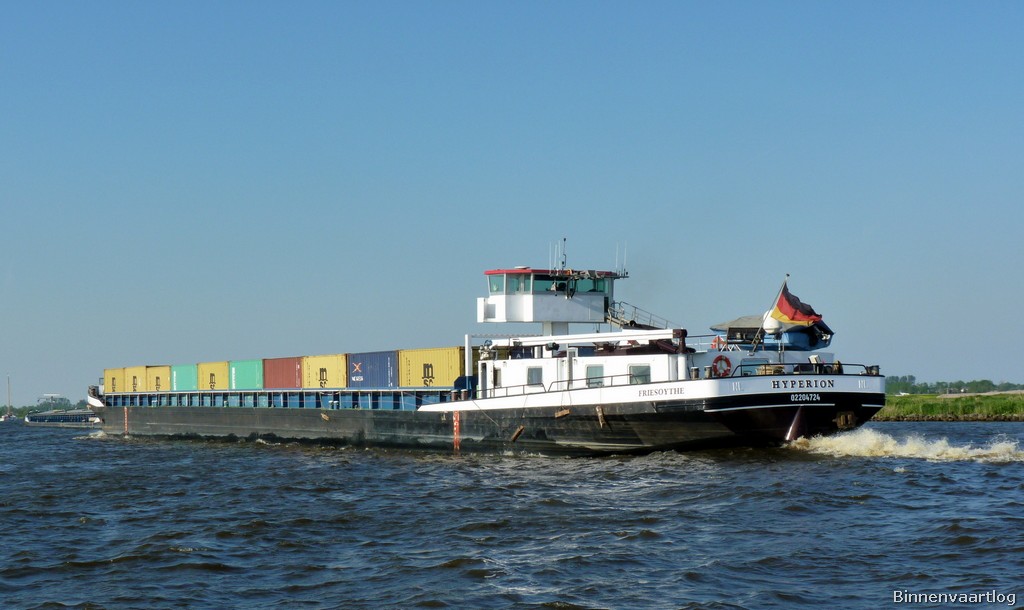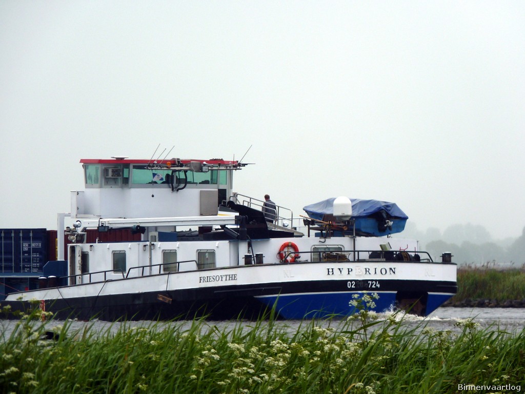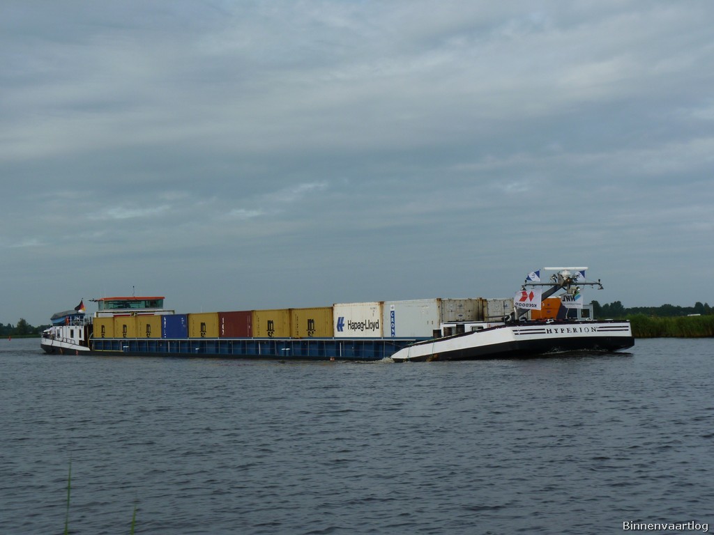 Hyperion , 85,32 x 9,50 x 3,02 , 1652 ton , Bouwjaar 1972 , Werf Kramer & Booij in Kootstertille ( Nederland ) , 1200 pk MAK , ex Schwarzmeer , ex Nautica 2 , ex Willem Barendsz , ex La Blanca , ex No Fear , ex Dione , eigenaar H.Lüpkes in Neuscharrel , ENI 02204724