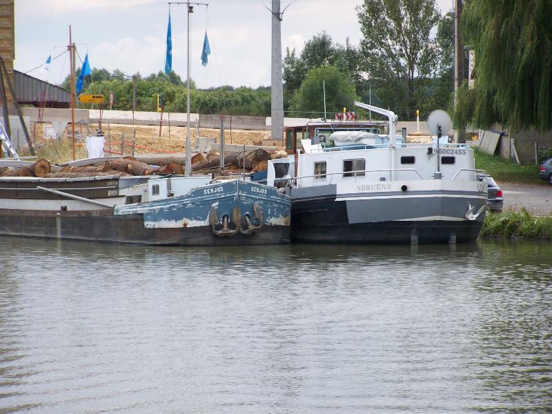 Les (trop) rares commerces rencontrés pendant mon petit périple sur le latéral à la Loire ! Serjos et Sequens à La Chapelle-Montlinard le 14 Août 2010. Chargés de grumes de chêne, à ce que m'a dit un éclusier, pour la fabrication de tonneaux à vin. Mmmmmmm, Y'a bon le Sancerre !!!!