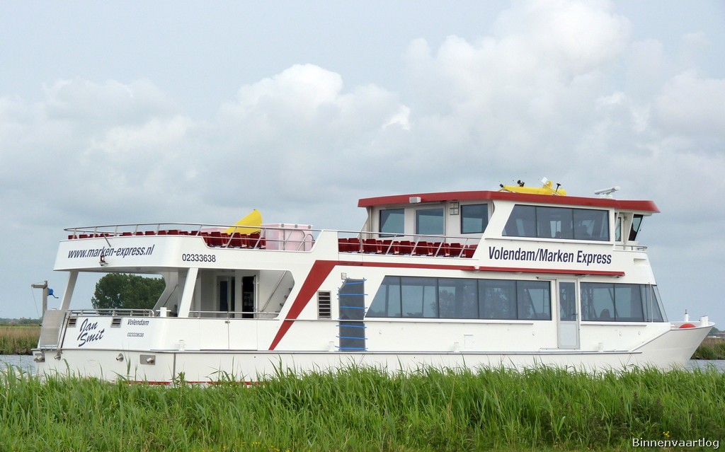 Jan Smit , 26,80 x 6,80 x 1,20 , Bouwjaar 2011 , Werf J.Talsma in Franeker ( Nederland ) , 2 x 170 pk John Deere en 40 pk Kalkman boegschroef , eigenaar Rederij Volendam-Marken Express BV in Volendam , ENI 02333638