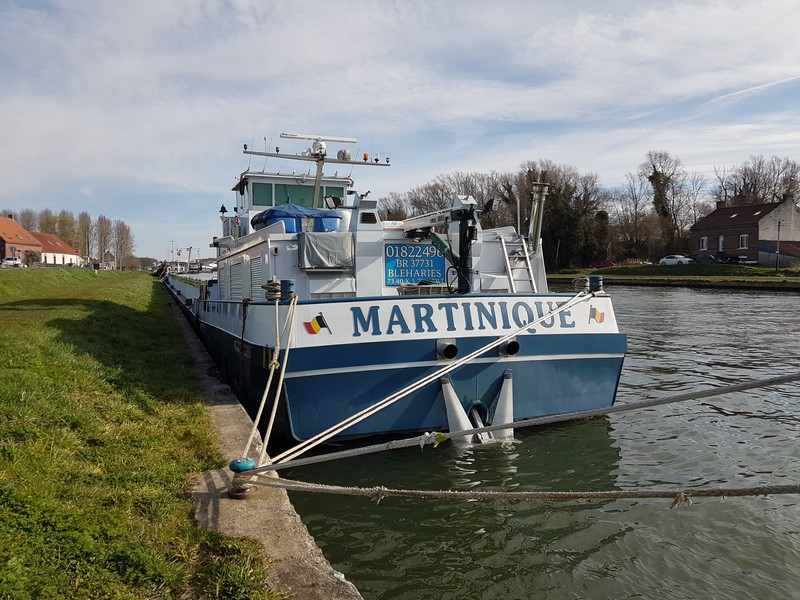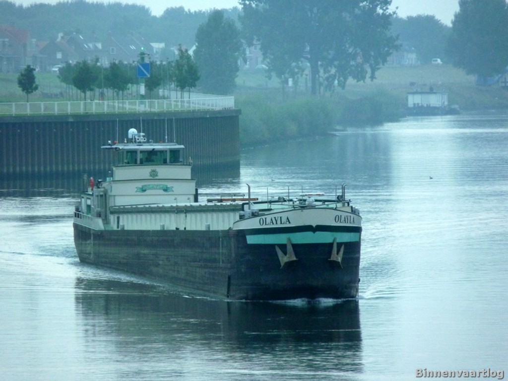 Olayla , 73,40 x 5,75 x 3,20 , 1031 ton , Bouwjaar 1985 , Werf Althom Atlantique in Denain ( Frankrijk ) , 950 pk Scania en 100 pk Perkins boegschroef , eigenaar eddy Lorio in Duinkerken , ENI 01822496