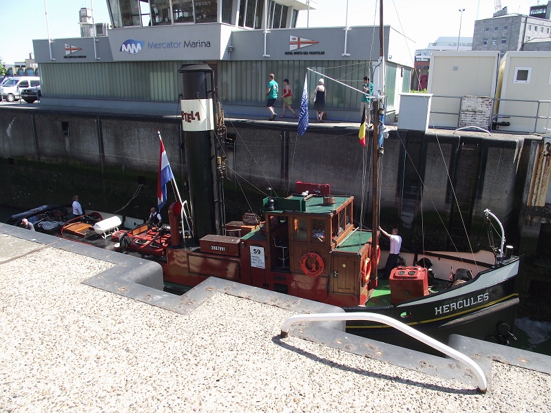 Encore un remorqueur à la vapeur, dans l'écluse donnant accès au port de plaisance à Ostende , HERCULES