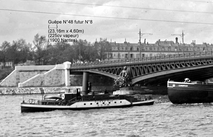 Remorqueur Guêpe 8 (---)(1)(16,10m x 3,05m)(60cv vapeur)(1907 Nantes)Rallongée en 1927 dimensions 26,07m x 4,60m -propulsion 225cv vapeur.jpg (281.35 Kio) Vu 2994 fois