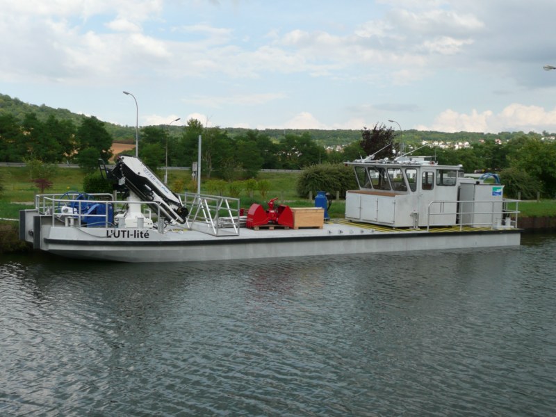 Je suis ravi de vous présenter le nouveau ponton multifonction du Service Navigation du Nord-Est, baptisé L'UTI-lité et qui porte un beau matricule tout récent de Strasbourg-Canal, puisque Nancy, comme Capri, c'est fini : STC1390F.