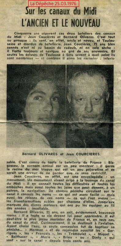 Né à Ayguesvives (31) en 1914, Jean-Marie était un homme de caractère et un bon vivant, haut en couleur avec un fort accent toulousain. Il a la particularité de n’avoir mené que des « pinardiers » en commençant par la SAINTE GERMAINE, une barque pontée en bois.