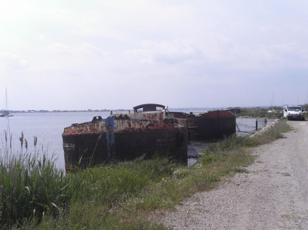 (16)Son séjour dans l'étang de Thau lui fut fatal. L'agressivité de l'eau salée eut raison de cette carcasse d'acier et, en 2009, après 17 ans dans ce milieu hostile, LA BELLE PAULE fut déchirée, accompagnée dans sa triste fin par le