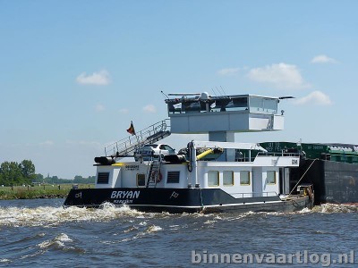 Bryan , 18,55 x 9,97 x 2,52 , 91 ton , Bouwjaar 2008 , Werf Tinnemans in Maasbracht ( Nederland ) , 2 x 1065 pk Caterpillar , eigenaar R. Geffens in Merksem , ENI 06105041