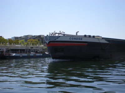 Je l'ai suivi pendant son éclusée à Tarascon, ce vendredi 29/01/2016 vers 10 h 30. Avalant, il était chargé de billes de bois pour l'usine de pâte à papier située juste en aval. C'est effectivement un superbe bâtiment. Après avoir attendu le feu vert, il est en entré et sorti "au pas", et n'a vraiment accéléré qu'à la sortie du musoir aval.