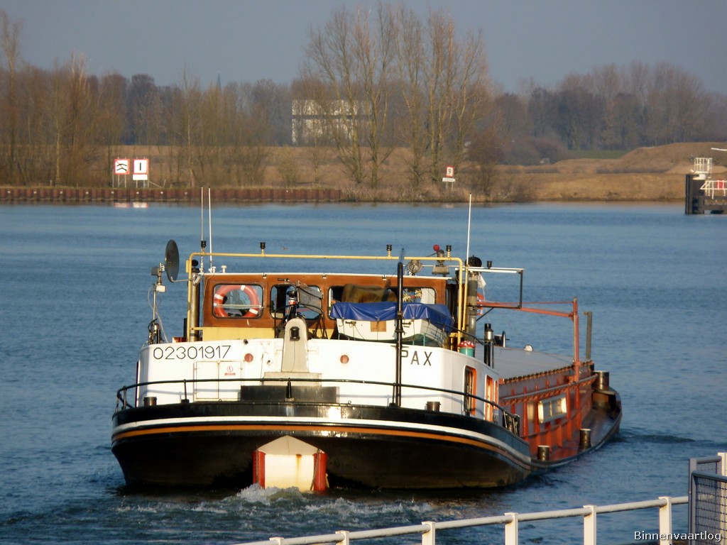 Pax , 37,45 x 6,32 x 2,24 , 339 ton , Bouwjaar 1927 , Werf Wortelboer in Delfzijl ( Nederland ) , 110 pk Gardner , ex Eifina , eigenaar P.H.Steenbergen in Rotterdam , ENI 02301917