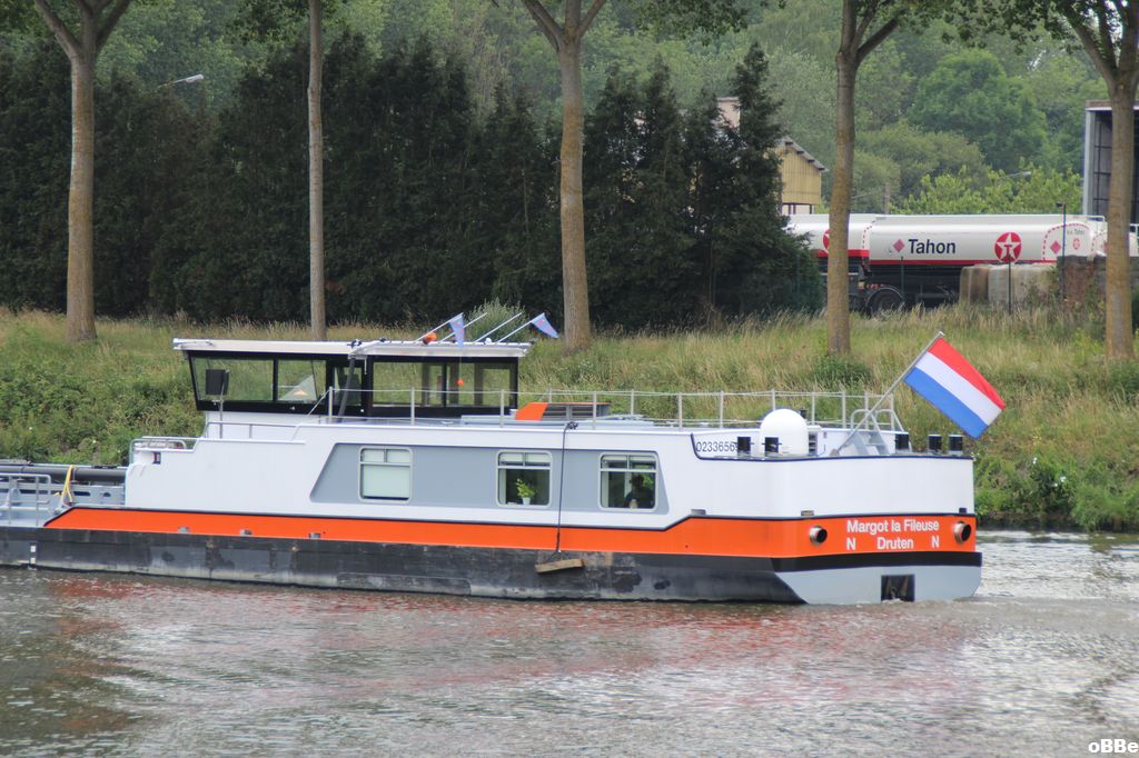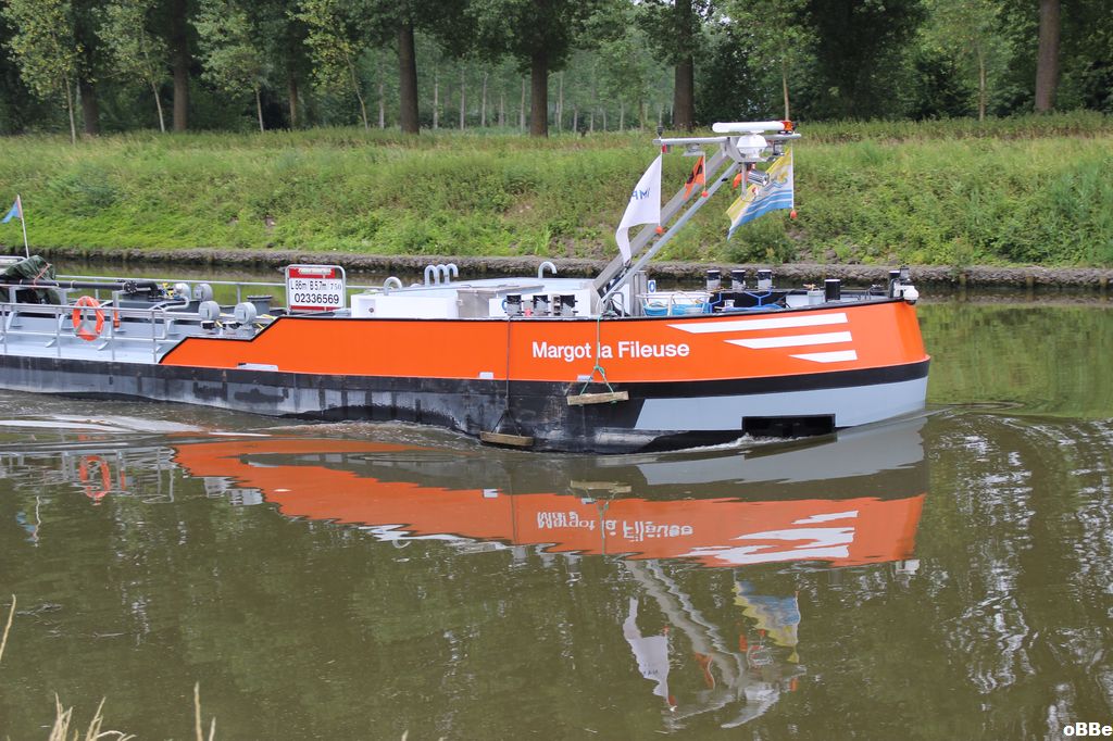 Margot La Fileuse , 86,00 x 5,70 x 2,40 , 750 ton , Bouwjaar 2016 , Werf Tinnemans in Maasbracht ( Nederland ) en de Gerlien van Tiem ( Druten ) , 608 pk Caterpillar , eigenaar Wijnhoff van Gulpen en Larsen in Druten , ENI 02336569
