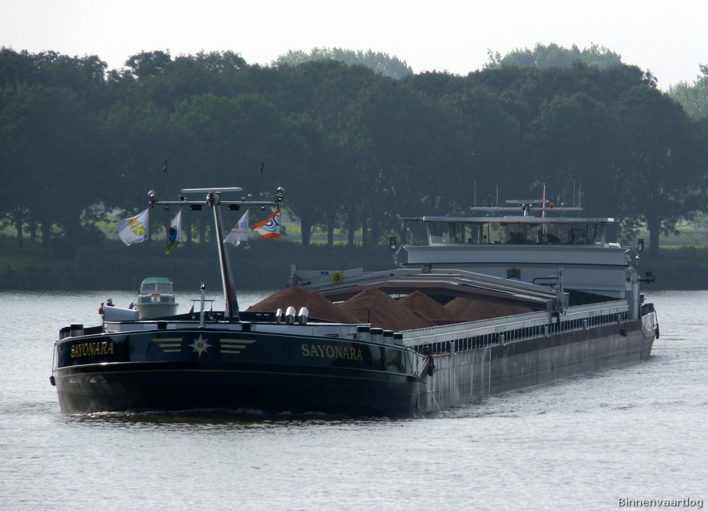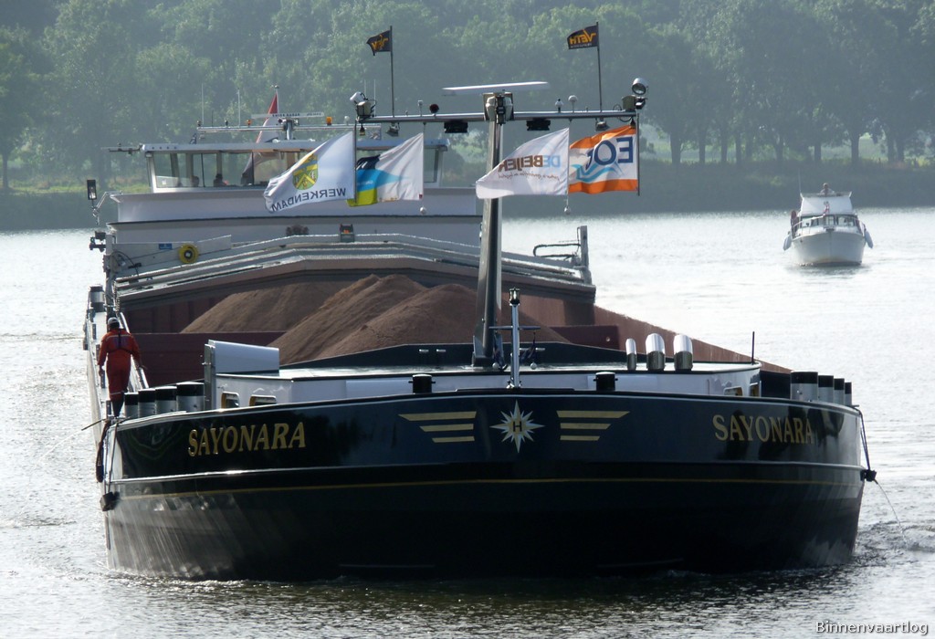 Sayonara , 134,95 x 11,45 x 3,59 , 3946 ton , Bouwjaar 2009 , Werf Yizheng Yangzi Shipyard in Yangzhou ( China ) en Instalho BV in Werkendam ( Nederland ) , 2 x 1278 pk Mitsubishi en 2 x 529 pk Scania Veth-Jet boegschroef , eigenaar C. Hovestadt Vof in Werkendam , ENI 02331472