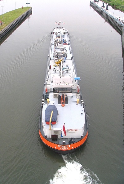 Nitrico II , 68,00 x 6,67 x 2,68 , 735 ton , 600 pk Caterpillar , 170 pk Gerlien kopschroef , Bouwjaar 1963 , Werf Bodewes in Bergum ( Nederland ) , eigenaar Wijgula BV in Druten , ENI 02005973