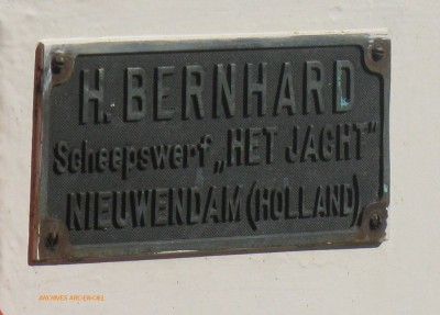 La plaque du bateau nous apprend que le bateau a été construit au chantier Het Jacht à Nieuwendam (devenu un quartier d ’Amsterdam).