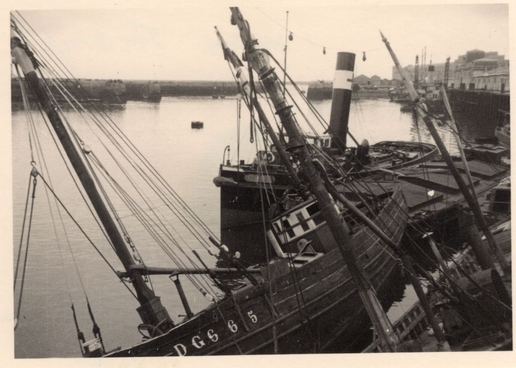 En premier plan le bateau de pêche "Joseph Roger" construit en 1930 avec le numéro de pêche DG. 665.