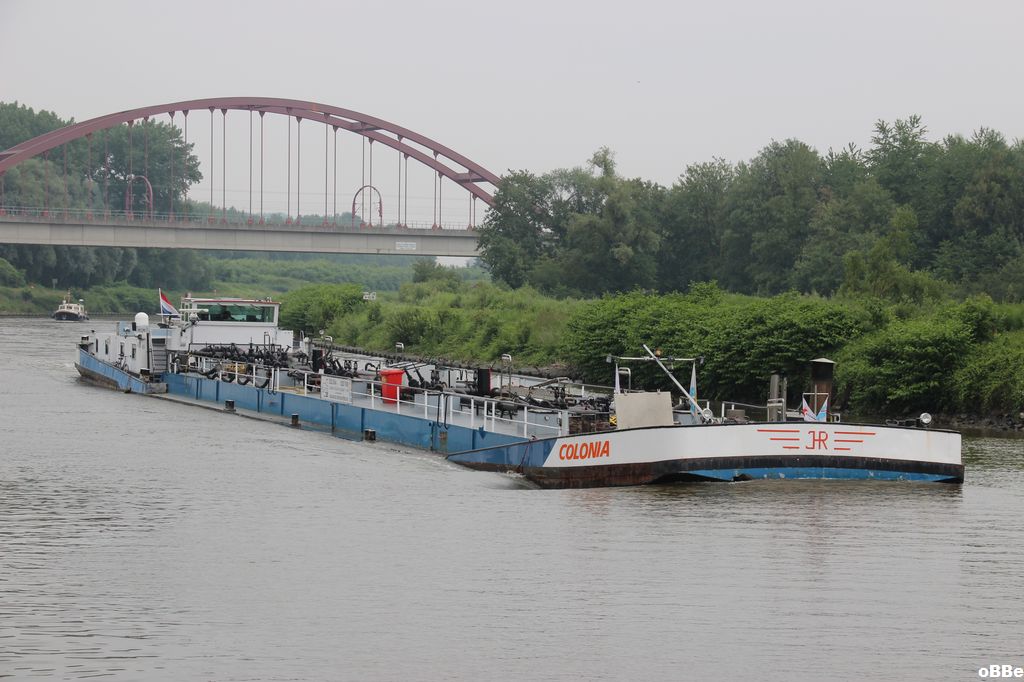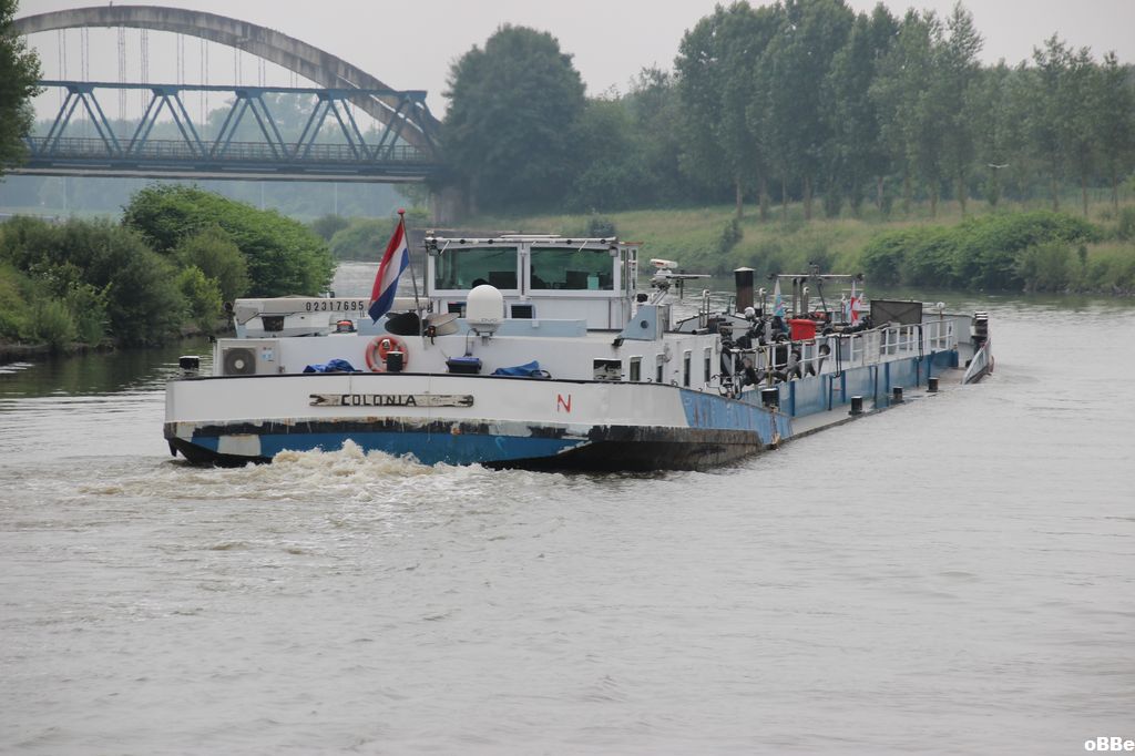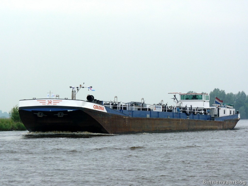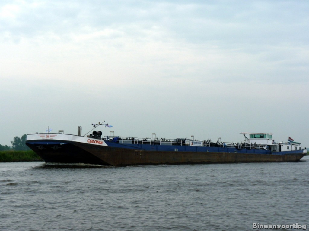 Colonia , 79,90 x 9,00 x 2,62 , 1193 ton , Bouwjaar 1973 , Werf Schlömer in Oldersum ( Duitsland ) , 953 pk Mitsubishi en 280 pk DAF - van Wijk boegschroef , ex Maienwerder , ex Südmeer , ex Annette , ex 2 x Alvracht 17 , ex 2 x Colonia , eigenaar Colonia BV in Zwijndrecht , ENI 02317695