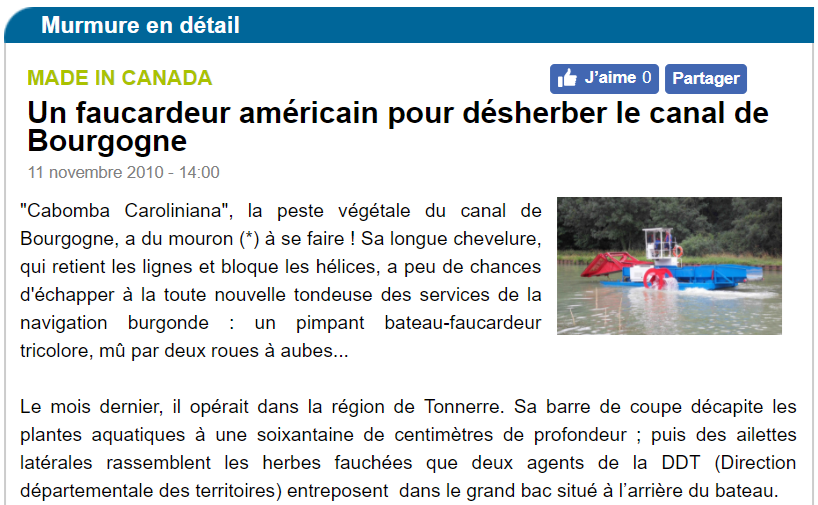 C'est vraiment un bon nom pour un faucardeur ! Il aurait été nommé ainsi par le Conseil Régional de Bourgogne, si j'en crois ce Murmure de la revue Fluvial, qui date de novembre 2010 (à retrouver