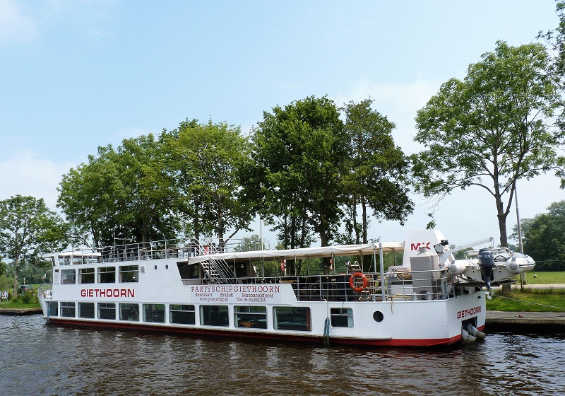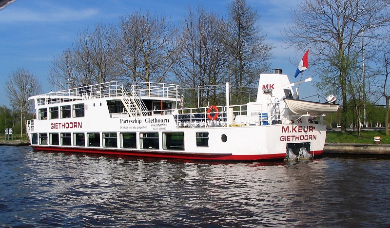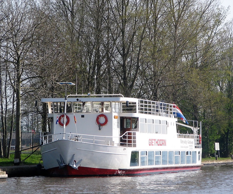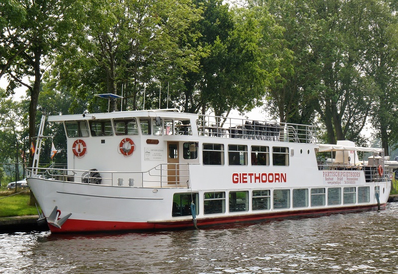 Giethoorn , 35,00 x 6,50 , 1,20 , Bouwjaar 1995 , Werf van Scheepswerf van Zelzate ( Belgie ) , 2 x 271 pk Volvo Penta , ex Limburger , ex Markt Obernzel , eigenaar Giethoorn Partyschip in Giethoorn , ENI 02207096