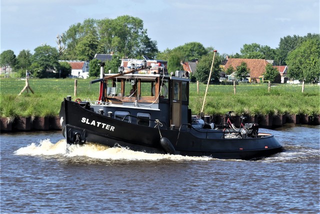 Slatter , 13,00 x 3,59 x 1,80 , Bouwjaar 1941 , Werf Hijlkema in Martenshoek ( Nederland ) , 250 pk Volvo Penta , ex Menje , ex Greta , ex Elan, ex Jetija , ex Albertje , ex Geke , ex Jeroen , eigenaar Vof. van der Veen in Abbega , ENI 02203383