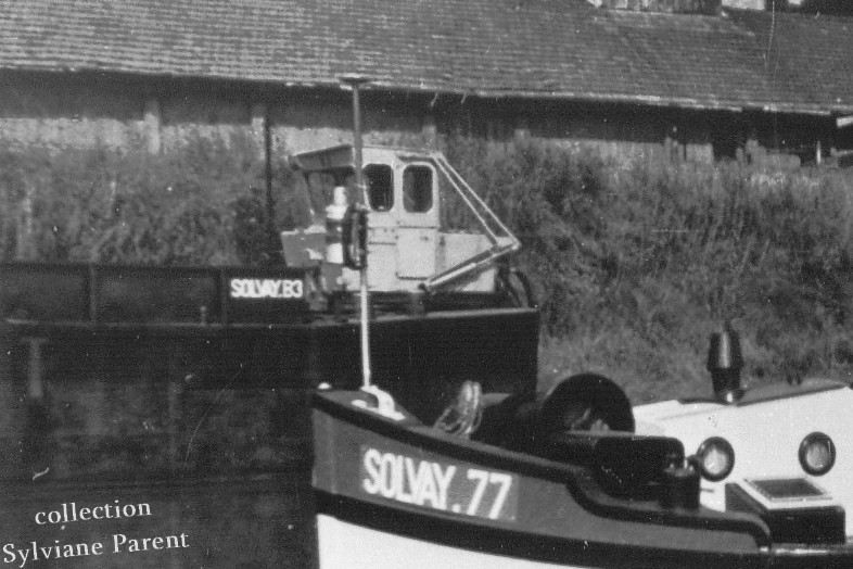 En 1975, la barge Solvay B3 devant la saline Maugras à Dombasle :