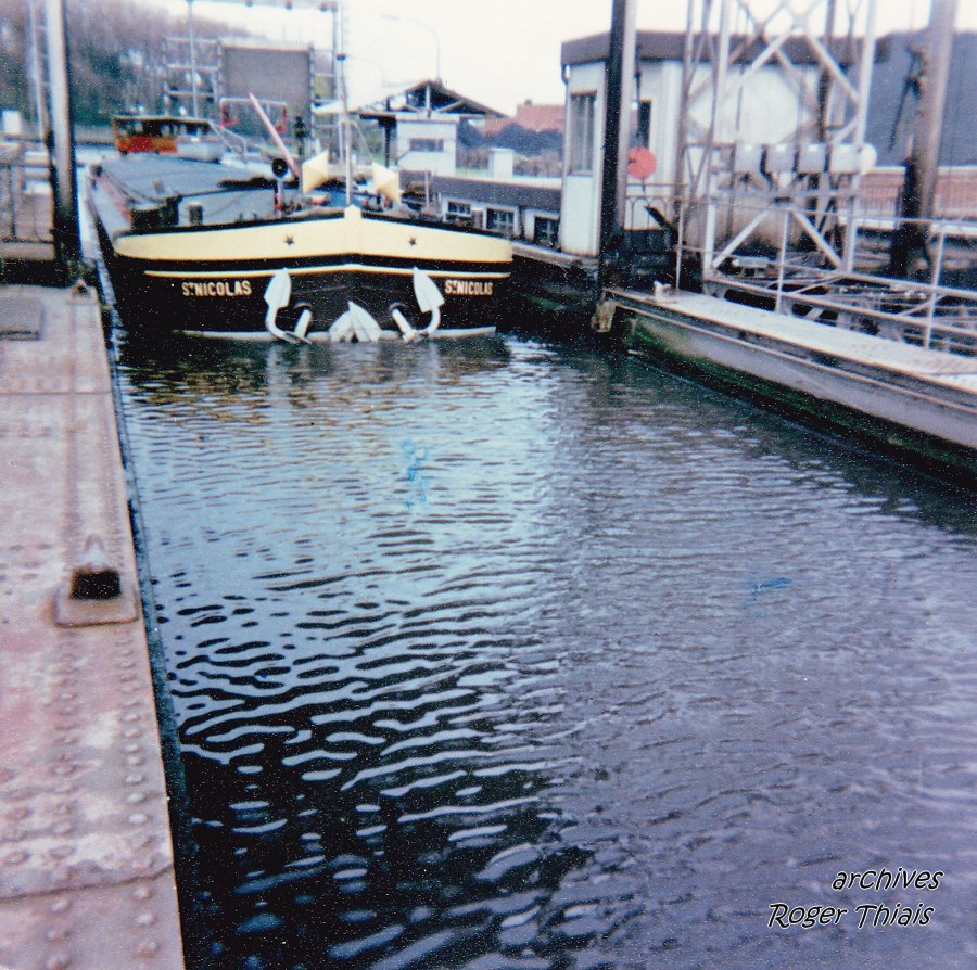 La devise du SAINT-NICOLAS comme le KIEV était restée car ce bateau avait été vendu en viager. Je m'en rappellle, l'ayant moi même visité pour le pousser, et la dame m'avais expliqué qu'il fallait reprendre le viager et que les premier proprio habitaient Pimprez, pas loin du pont. On voyait, je me souviens, une plaque avec le nom du proprio et matricule, dommage à l'époque j'aurais dû la photographier, mais bon avec mon petit kodak de militaire pas terrible...