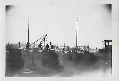 Le CEDUFER ,un SCAR tout neuf a la sortie du chantier des SCAR. Le matricule ,c'est peut être P 13128 car souvent les matricules se suivait avec les bateaux bord a bord et que le CASTEL avait 13129 et le NOTRE DAME DE LOURDES dont on voit une demi épaulure a gauche avait 13130. La photo à été donné à mon père mais il ne savait plus par qui.