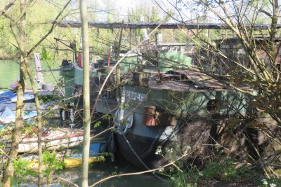 Toujours au m^me endroit ce jour, mais le long de la berge caché par les arbres, et de l'eau caché par d'autres bateaux