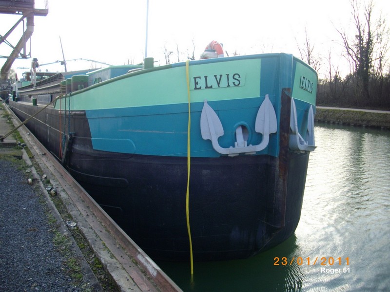 Il traînait quelque part dans ma boîte de speculoos. Mais comme je trouvais qu'il ne ressemblait pas beaucoup à un Strasbourg( et pour cause de modification ), je n'ai pas osé le poster. Un Scar de Strasbourg de 1949, ELVIS , en 2007 et 2008, était le pousseur de la barge Graceland ( chantier Abdon Leconte de Neuville-Saint-Rémy près de Cambrai). Elvis est motorisé par un GM de 238 cv