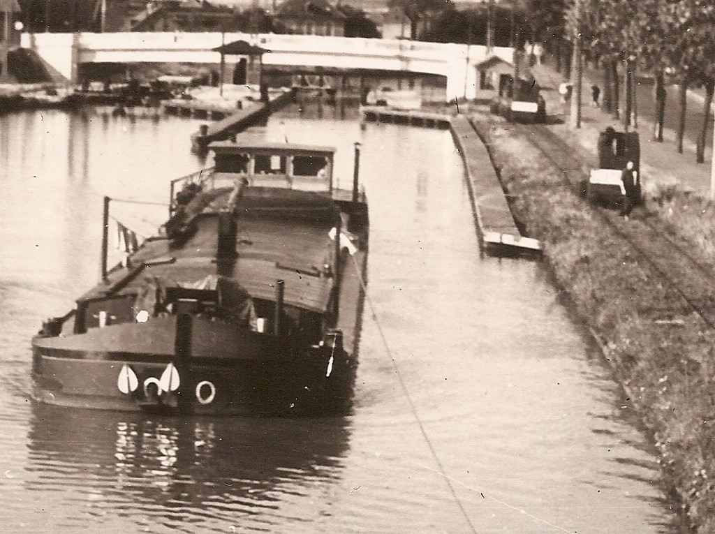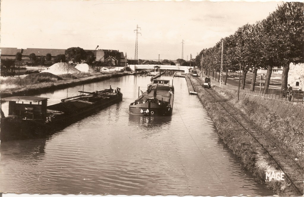 Cette CPSM... je l'ai depuis des années, et je n'avais jamais réussi à lire la devise du Strasbourg qui sort, montant, de l'écluse Catimpré, à Cambrai. Mais notre après midi à thème "Strasbourg et traction" m'a donné envie de mettre fin à ce mystère.