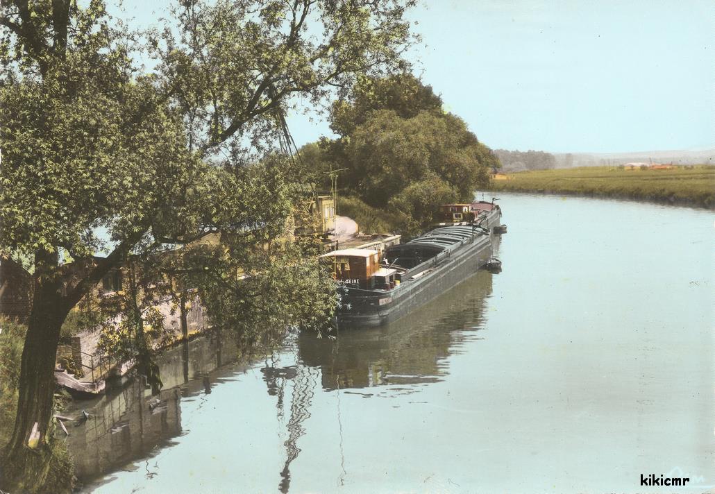 Sur une carte postale de Cuise-la-Motte (exemplaire écrit en août 1969), deux bateaux sur l'Aisne ; le premier, c'est bien un Strasbourg, non ? La devise est lisible, mais le matricule est en partie caché :