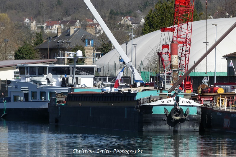 Voici le SETORI sur le chantier de restauration du quai en amont de l'écluse de Champagne sur Seine. Il était temps de commencer les travaux avant que toute la rive ne s'en aille.