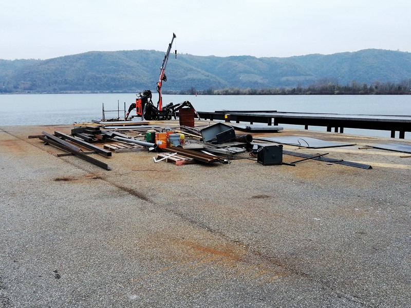 En cours de travaux, l'on voit sur le quai : un treuil, l'ancienne grue, un tour de capot etc....