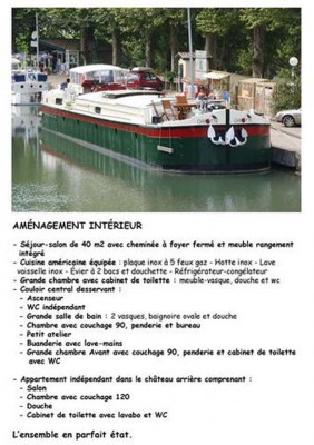 Sorti des Forges de Strasbourg, fin des années 1950, motorisé au début des années 1960 chez Landy à Vitry le François, par un BERLIET MAGIC type MDZ23M avec Inverseur Rémy Barrère et une hélice Renou-Dardel...