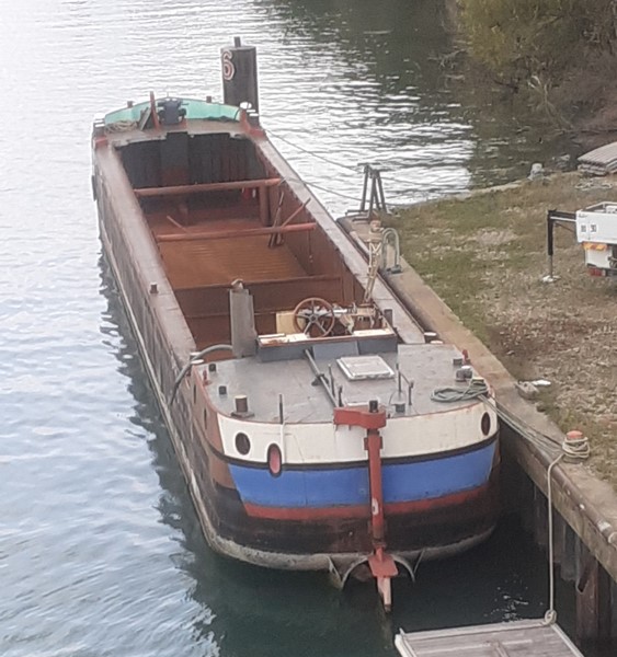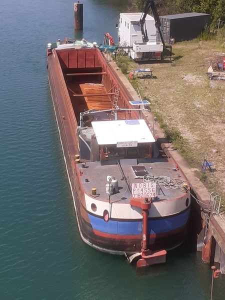 NOBIS, c'est un peu un bateau historique, maintenant : en effet, c'est lui qui a été le dernier à charger à la Solvay à Dombasle. Après des milliers et des milliers d'autres, il n'y en a plus eu après ce 3 avril 2019 :