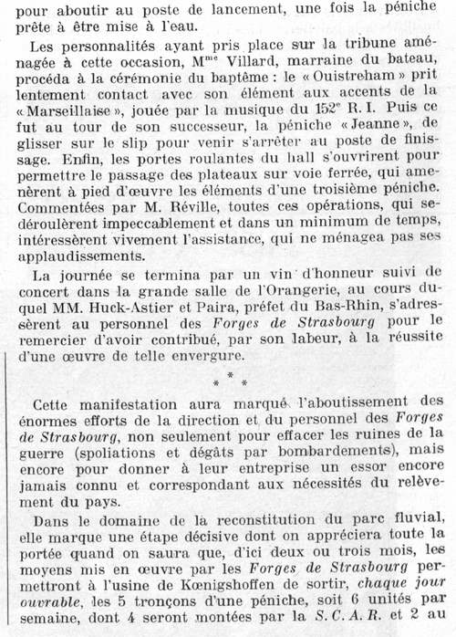 Je vais essayer de me rattraper en te donnant des infos sur les circonstances dans lesquelles la photo que tu as publiée a été prise ! Grâce au numéro de mars 1949 de "La navigation du Rhin - Revue de la navigation intérieure" :