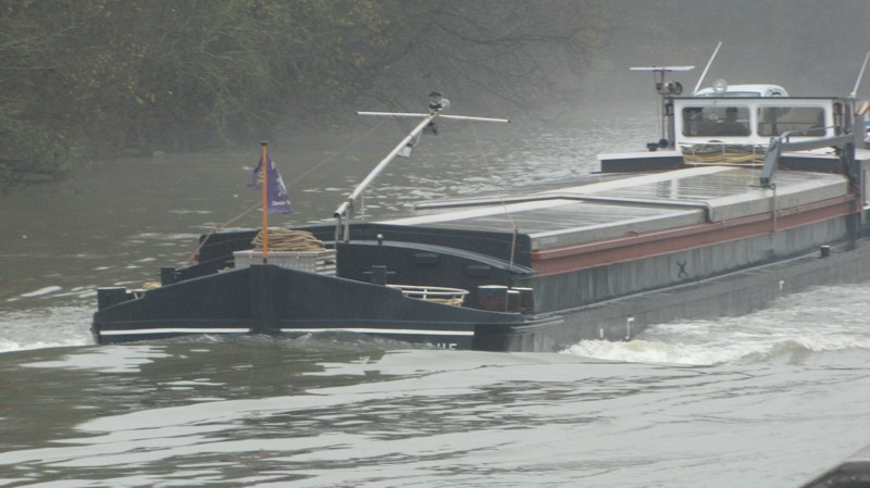 Depuis un bon moment, de la rive droite je vois ce bateau.
