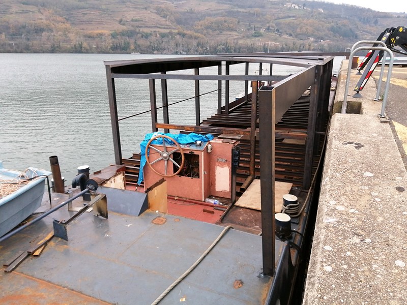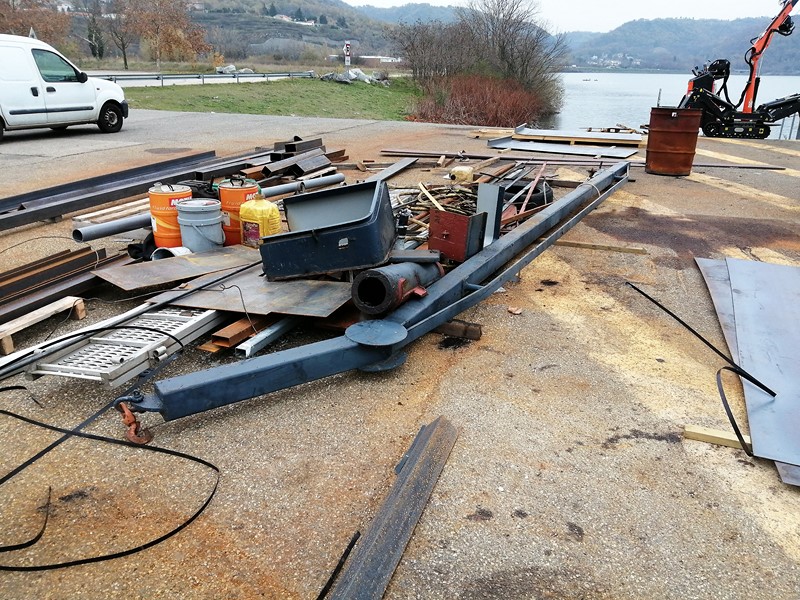 En cours de travaux, l'on voit sur le quai : un treuil, l'ancienne grue, un tour de capot etc....