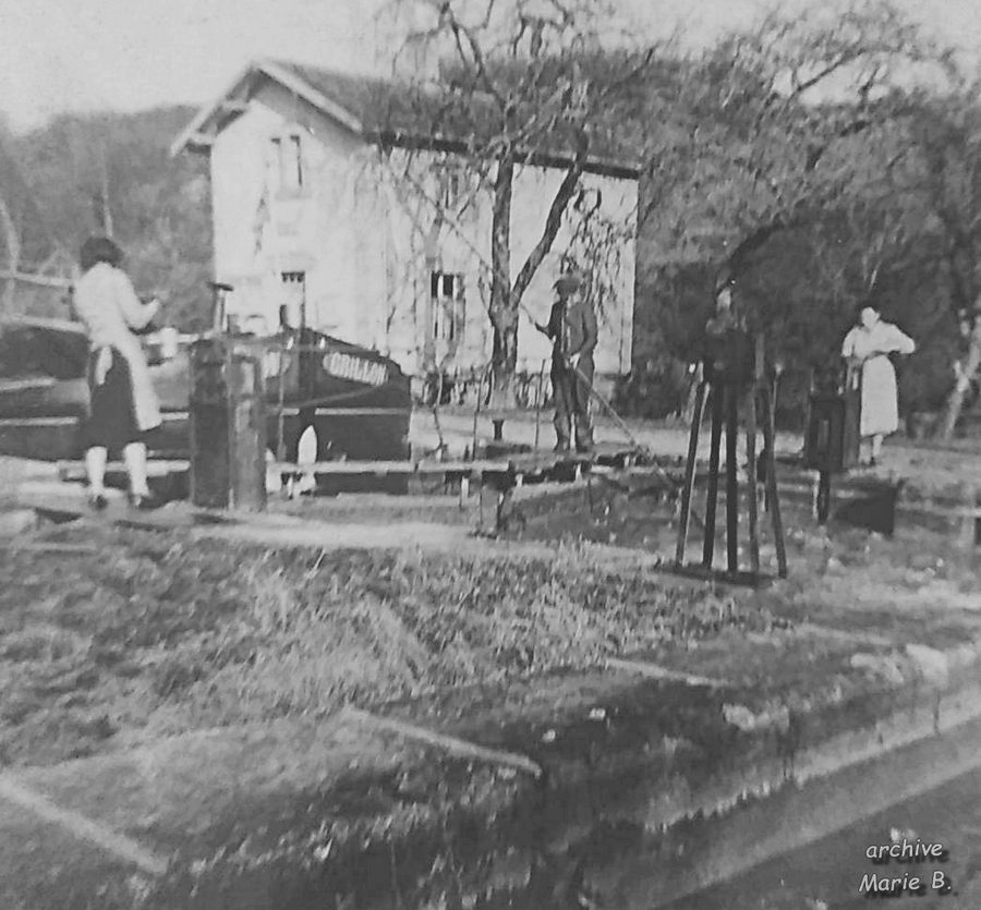 Sur la photo du bas, où il est montant dans une écluse, on voit que c'est en hiver : une homme sur les passerelles poussent les glaçons avec un yek. Vu la maison et les vannes d'aqueducs, ça ressemble fort au canal d'Heuilley.