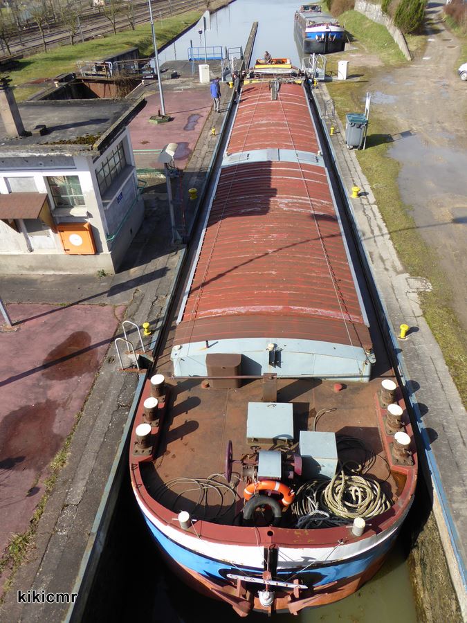 Ce bateau a navigué pour la dernière fois ce matin, samedi 28 février 2015 : parti de Nancy, il a rejoint Dombasle, où il sera déchiré, dans la cale du chantier Miclo... Le moteur (un GM 4 cylindres de 110cv, qui vient du