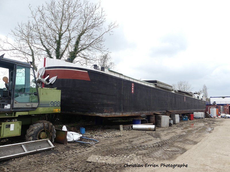 Nouvelle et dernière vie pour ce bateau qui a été tiré à terre au chantier naval des hauts de Lutèce à Thomery. Il va être aménagé en logement pour les ouvriers du chantier.