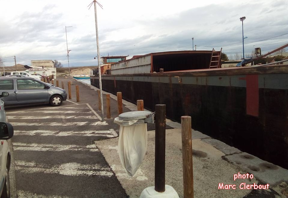 Et actuellement, il est à Frontignan, au pont-levant, en cours de transformation pour devenir bateau-logement (photo Marc Clerbout) :