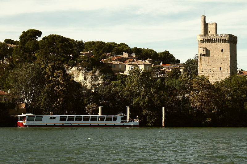 Le PHENICIEN amarré à Villeneuve-Lès-Avignon devant la tour Philippe le Bel.