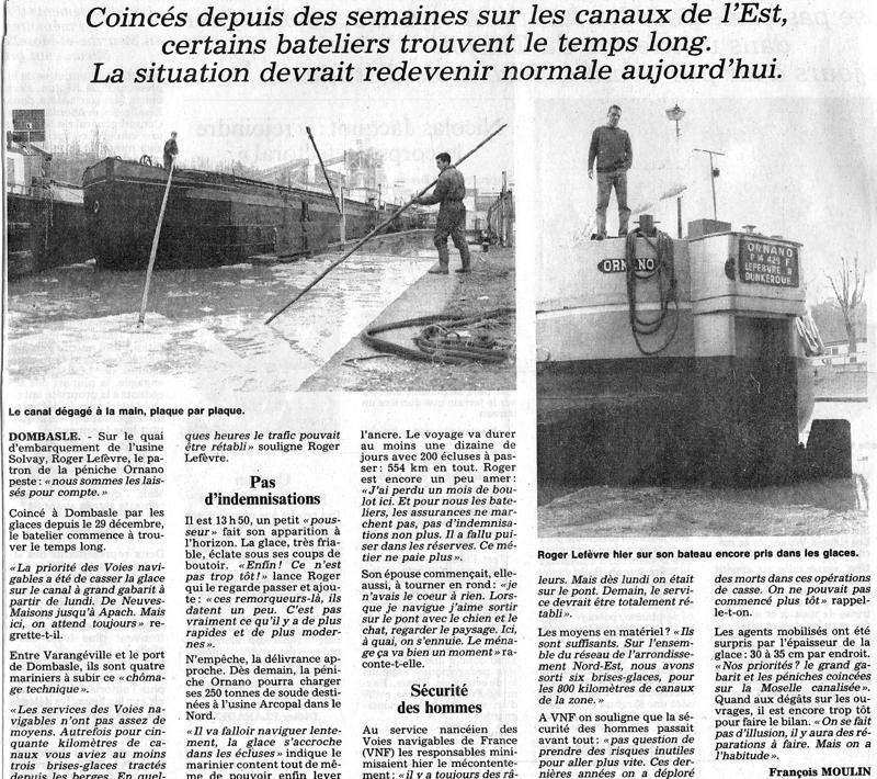 Elle est tirée de l'article : "La glace est rompue" paru le 24 janvier 1997 dans l'Est Républicain, lors d'une vague de froid qui a vu quatre bateaux bloqués à la Solvay à Dombasle-sur-Meurthe :