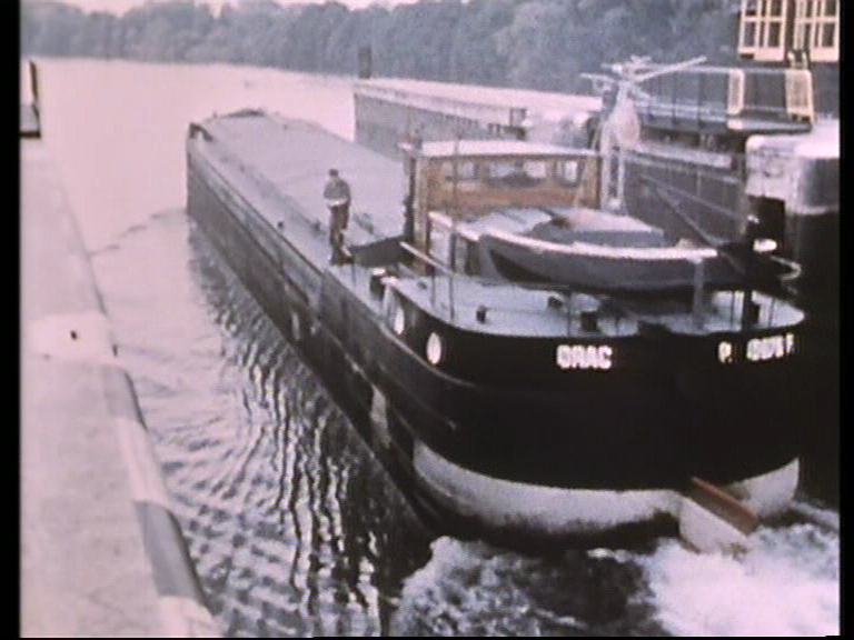 - tout d'abord, une capture d'image du DVD de "L’Homme du Picardie", où on le voit à la sortie d'une écluse (de Seine ?) et sur laquelle on peut lire la devise, et déchiffre le matricule qui ressemble à P1387XF (ça serait pas loin du