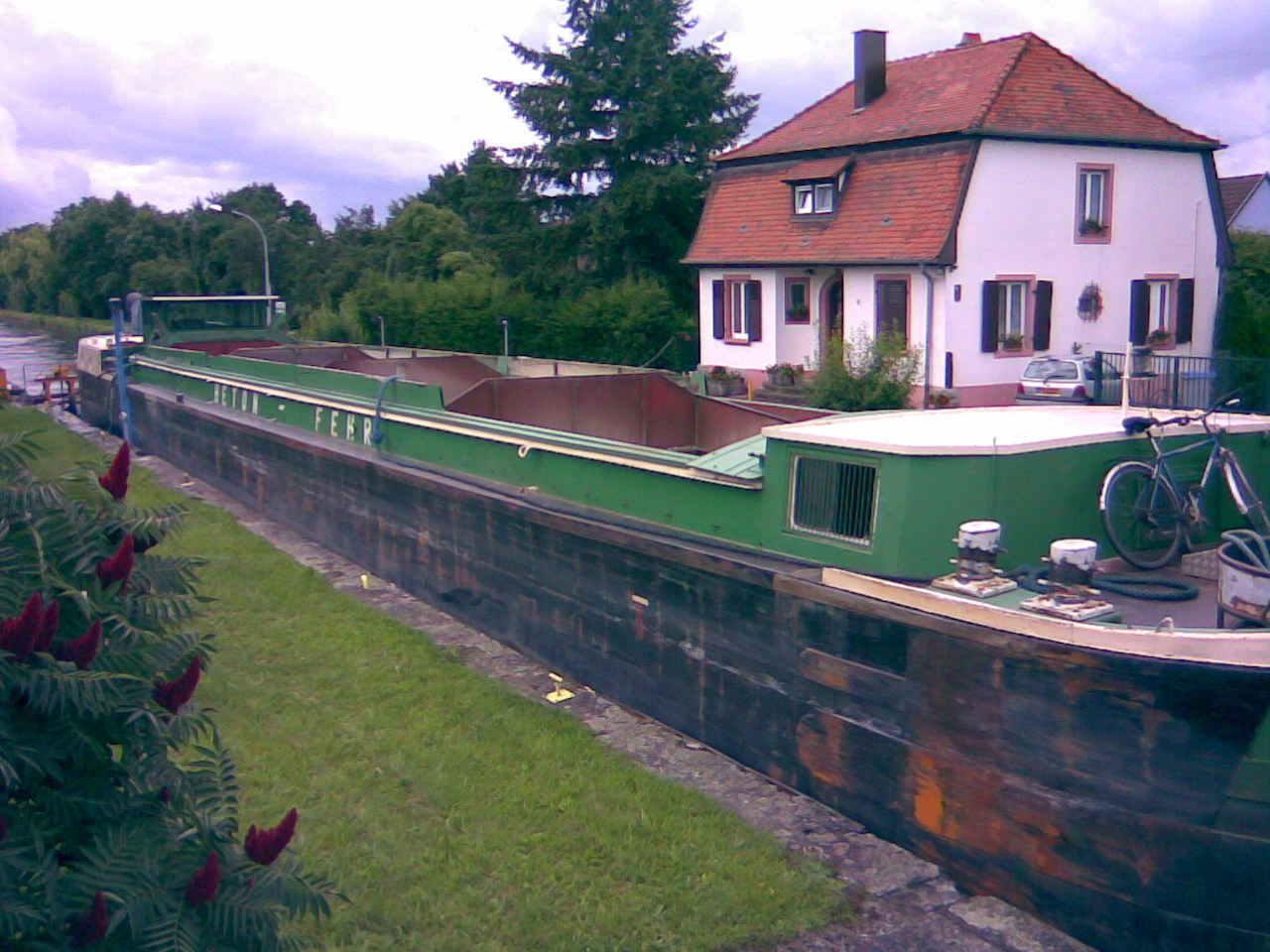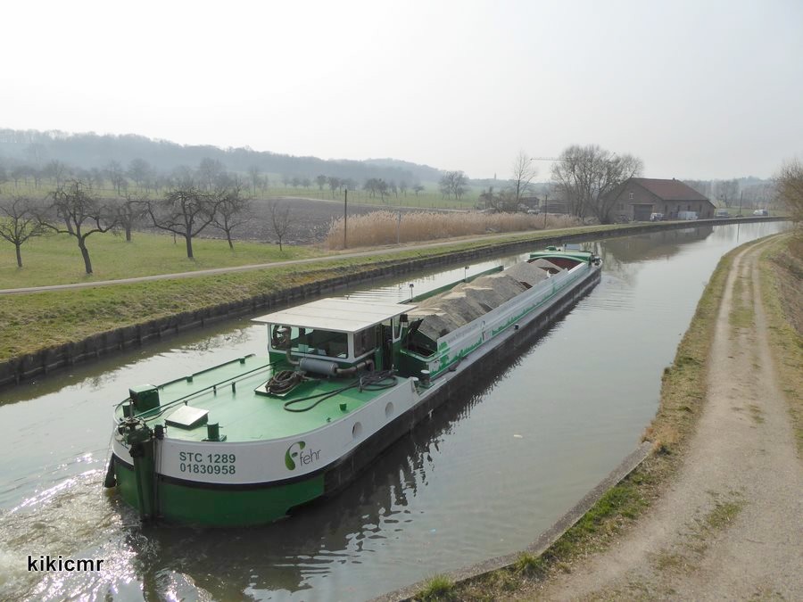 Avec le BETON FEHR III, ce bateau de l'entreprise Beton Fehr (Fehr Technologies) fait des rotations entre la gravière d'Eschau et la centrale à béton de Hochfelden (je ne sais pas combien de bateaux a cette entreprise) :
