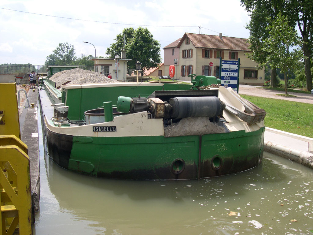 Avec le BETON FEHR III, ce bateau de l'entreprise Beton Fehr (Fehr Technologies) fait des rotations entre la gravière d'Eschau et la centrale à béton de Hochfelden (je ne sais pas combien de bateaux a cette entreprise) :