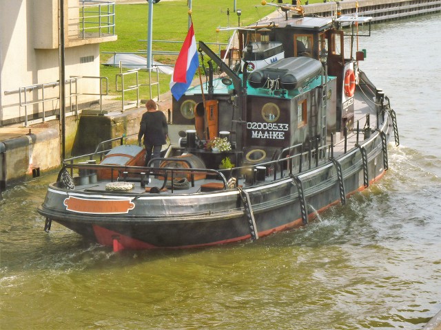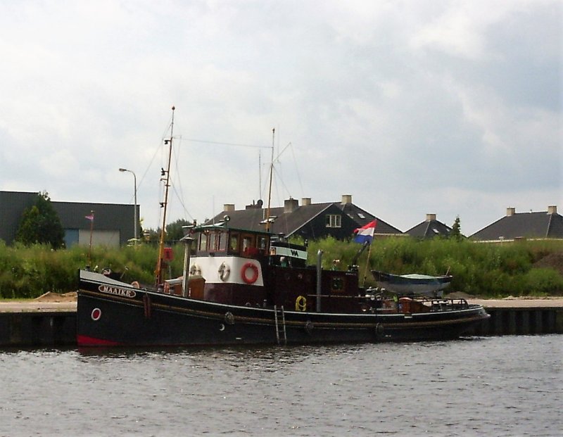 Maaike , 19,30 x 4,71 x 2,23 , Bouwjaar 1904 , Werf Arnhemse Stoom Sleephelling in Arnhem ( Nederland ) , 204 pk GM , ex Stadt Ruhrort , ex Rheinisch Schiffahrt Ges-II , ex Mark & Dintel V , ex Passe Partout IV , ex Lydior , ex Turc , ex Pampus , ex Reny , eigenaar H.J. Wesseling in Sleeuwijk , ENI 02008533